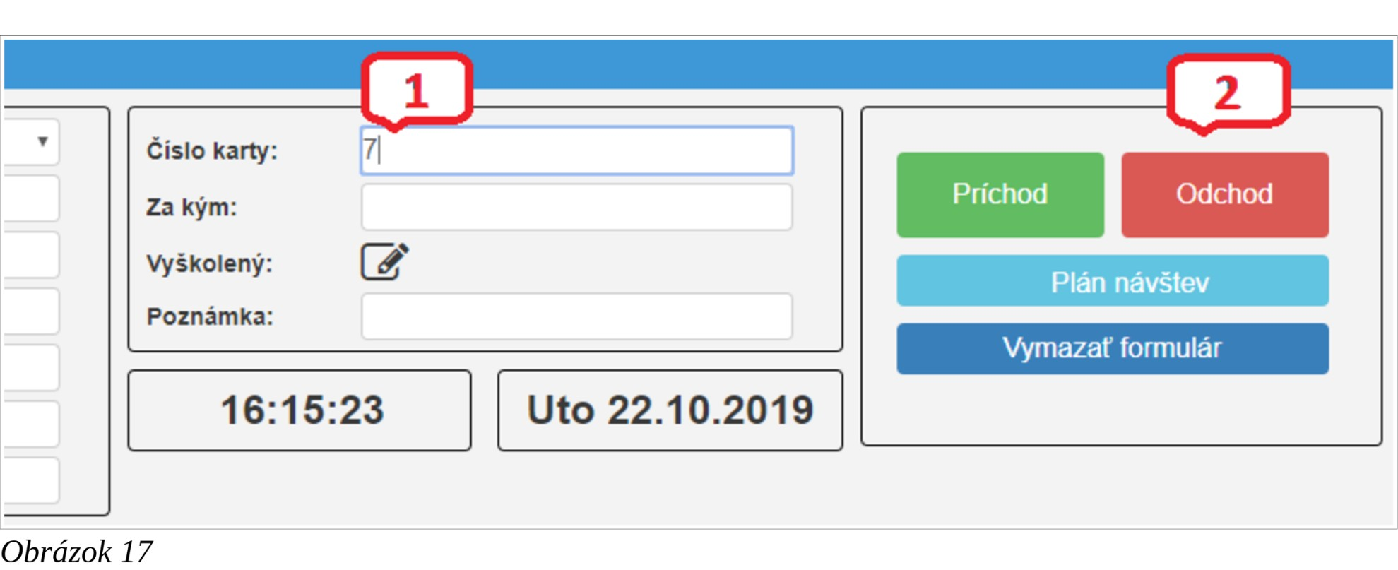 - Vrátnik zadá číslo návštevnej karty do políčka