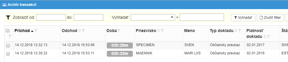 # Archív transakcií