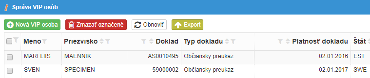 Priezvisko, alebo stlačením tlačítkaVIP osoby