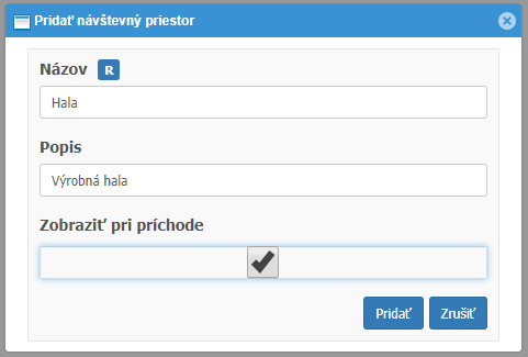 Evidovanie príchodu návštevy