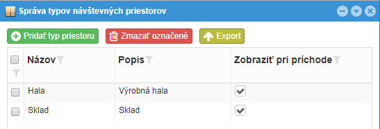 Na obrazovke Príchod a odchod návštev je možné vyvolať zoznam naplánovaných