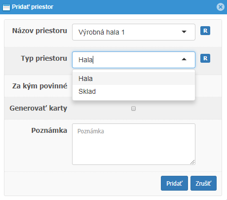 | Typ dokladu | Políčko s výberom | Priestor *** | Políčko na zaškrtnutie |