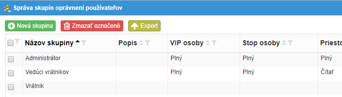 Obrazovka slúži na správu vrátnic. Ak je v spoločnosti viac vrátnic je potrebné aktivovať voľbu „Filtrovať transakcie podľa vrátnic“, prípadne „Striktný mód vrátnic“ (pozri stať Záložka Príchod návštevy 3.9.1).