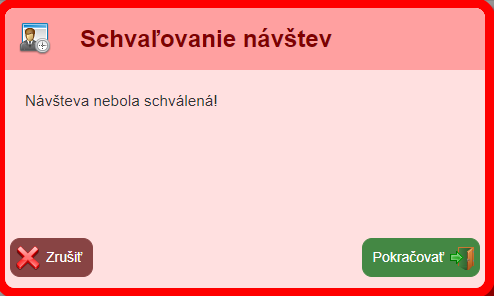 Po odoslaní formulára je žiadosť evidovaná v systéme, a schvaľovateľovi príde e- mail s odkazov na schválenie/odmietnutie návštevy.