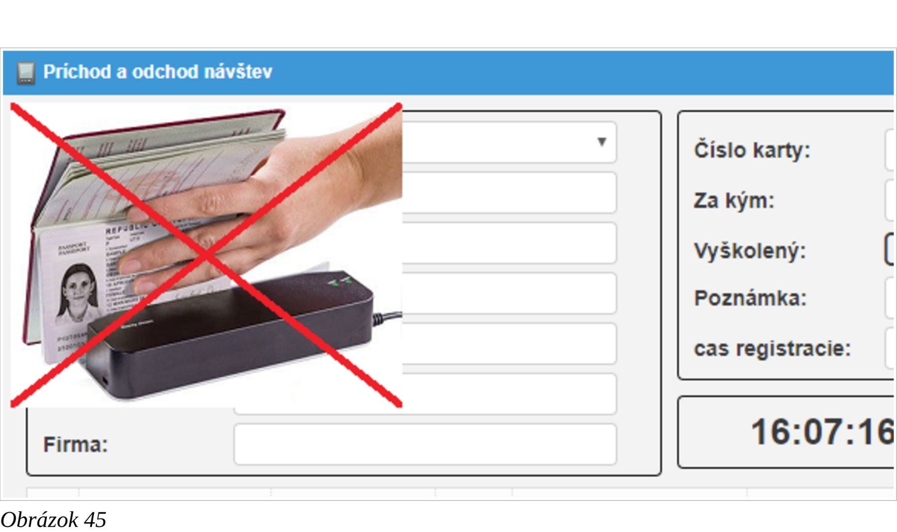 - Vrátnik vyplní formulár potiahnutím dokladu cez štrbinovú čítačku dokladov DESKO Identy CHROM a stlačí tlačítko Odchod