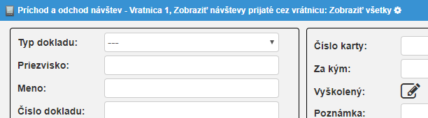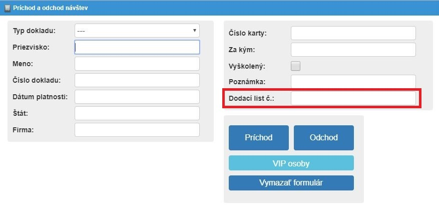 - Vrátnik vyplní Číslo dokladu a stlačí tlačítko