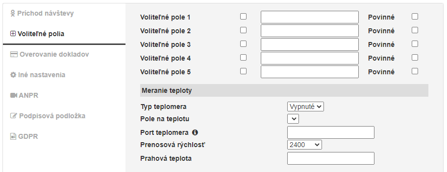 ** Či bude údaj povinný, sa nastavuje v Nastavenia