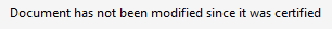 podpísaný (v prípade, že je voľba Ochrana PDF nastavená na hodnotu Podpisový certifikát).