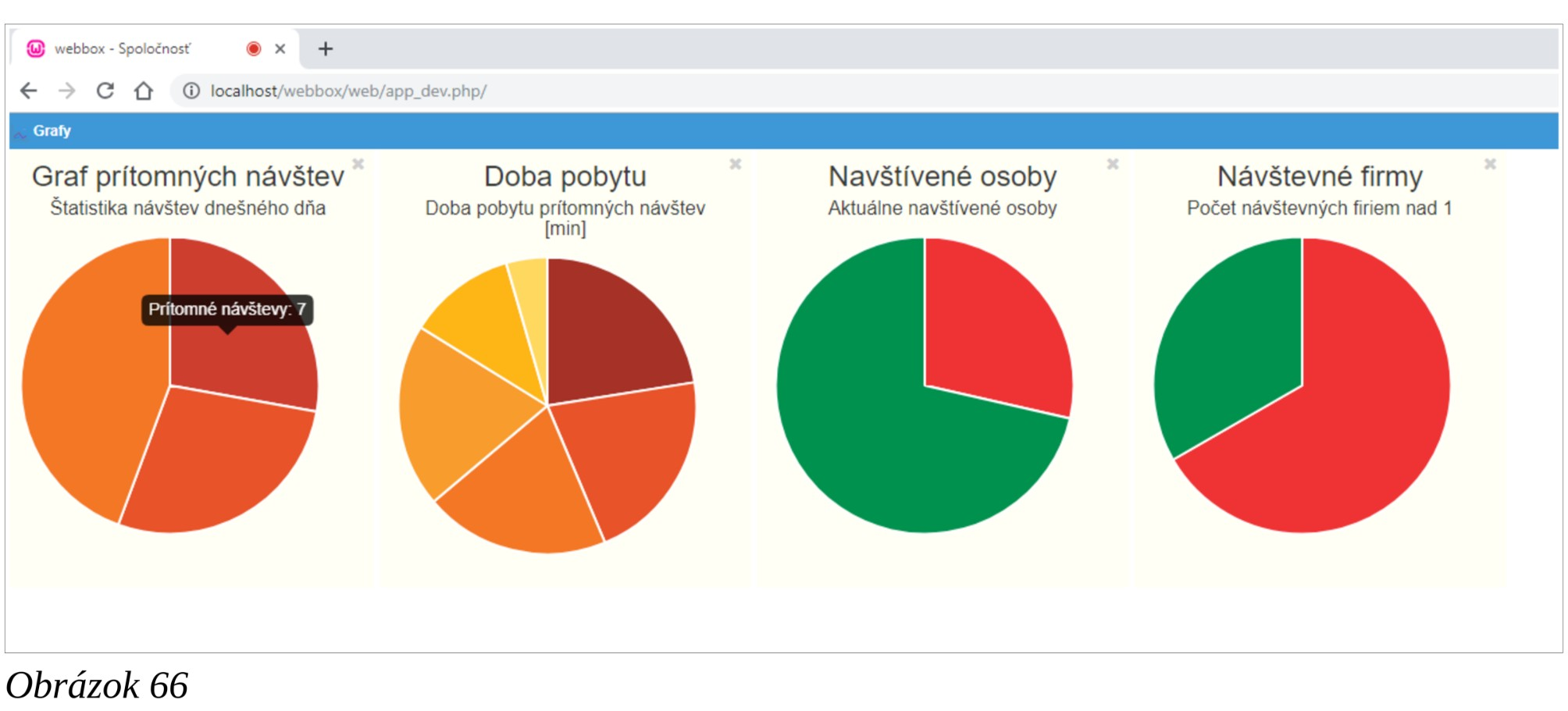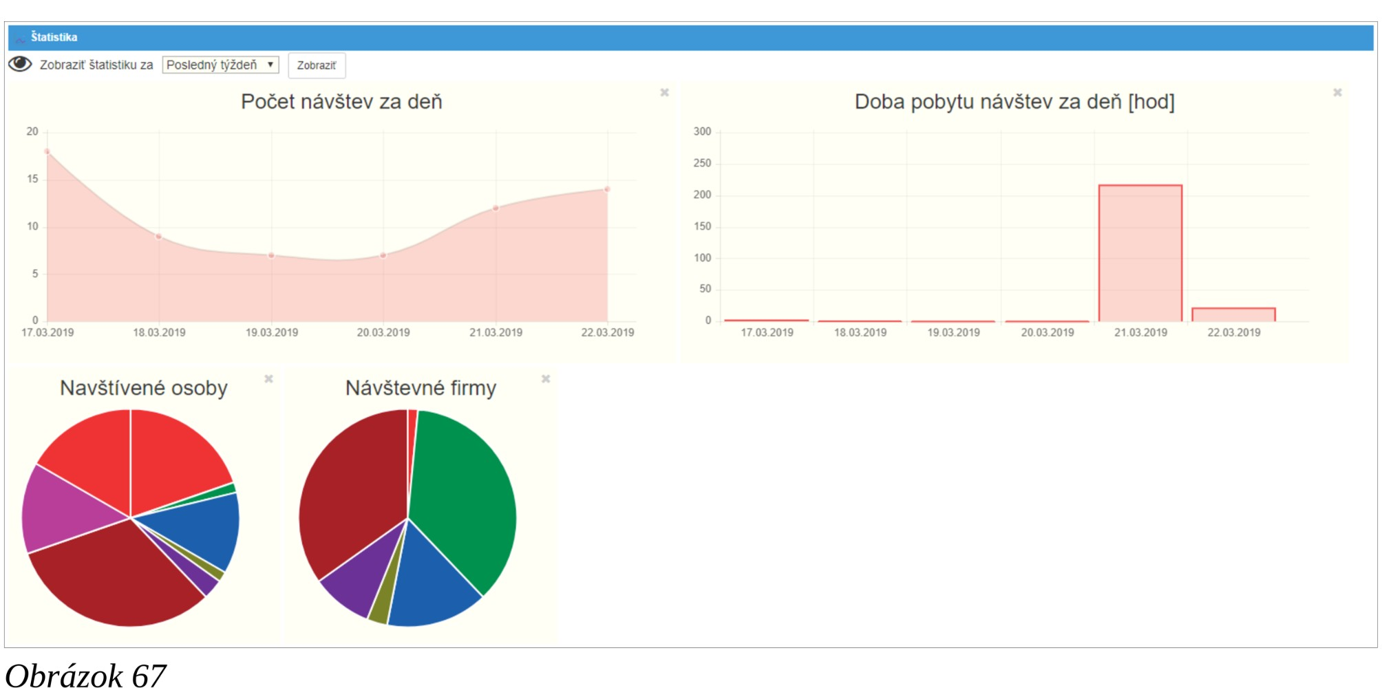 Obrazovka ponúka grafické zobrazenie a možnosť výberu zobrazeného obdobia rôznych údajov o návštevách. Ukážka zobrazenia je na Obrázku