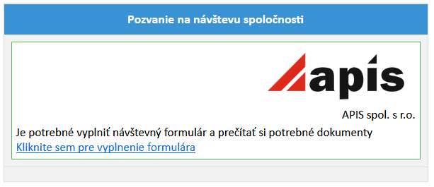 Ďalšou možnosťou je poslať žiadosť osobe, ktorá má záujem o návštevu spoločnosti. V takom prípade daná osoba dostane e-mail s odkazom na vyplnenie údajov