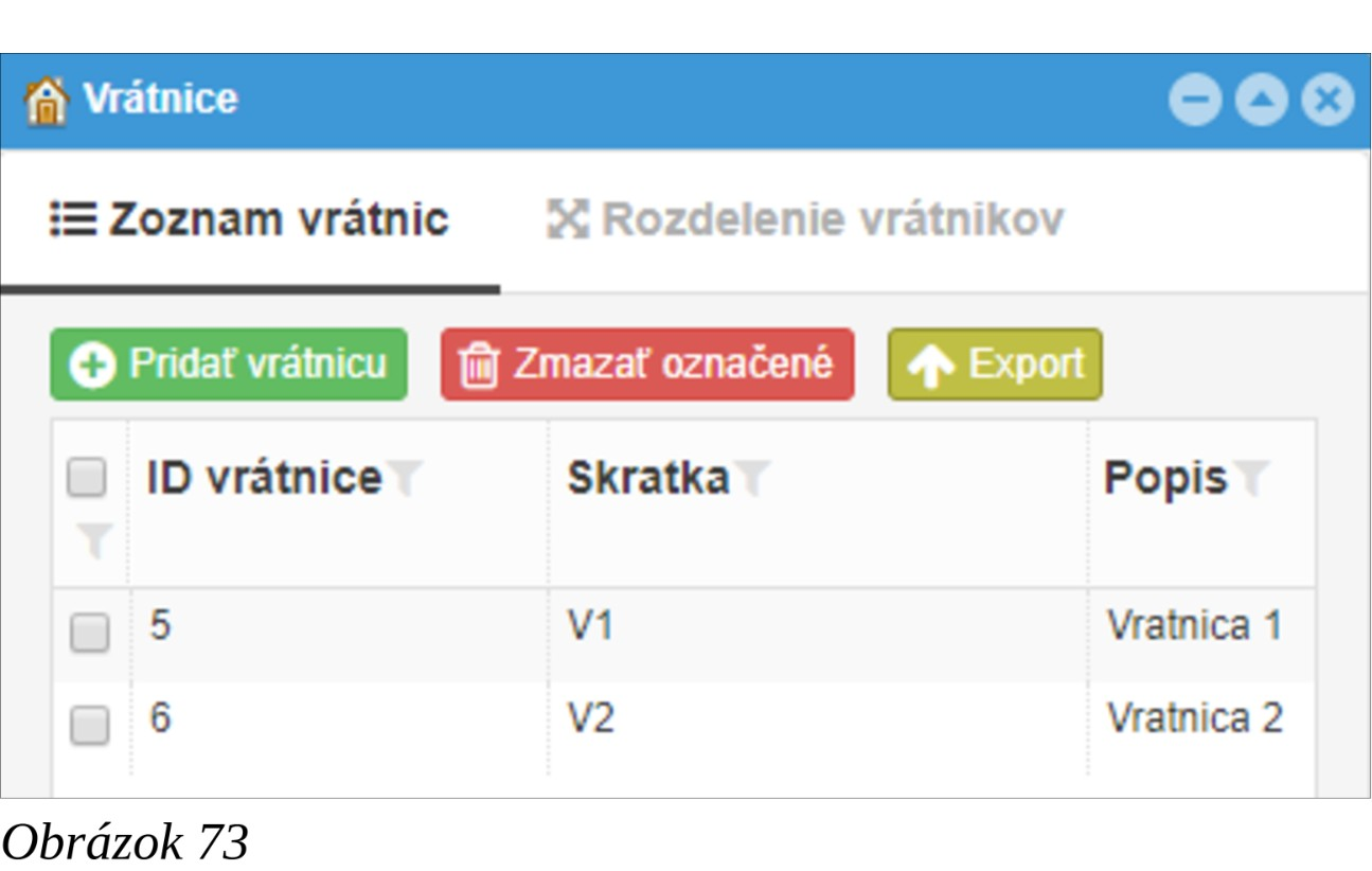 Slúži na správu (vytvorenie, úpravu, prehľad, zmazanie) zoznamu vrátnic.